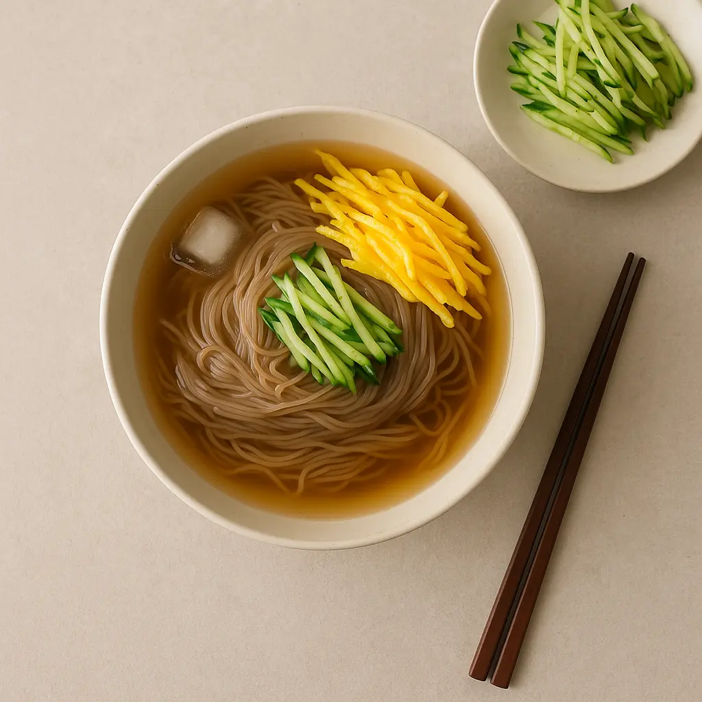 차가운 육수에 담긴 쫄깃한 면을 후루룩 한입 먹으면, 몸 안에서 열이 내려가는 느낌이 들어요.