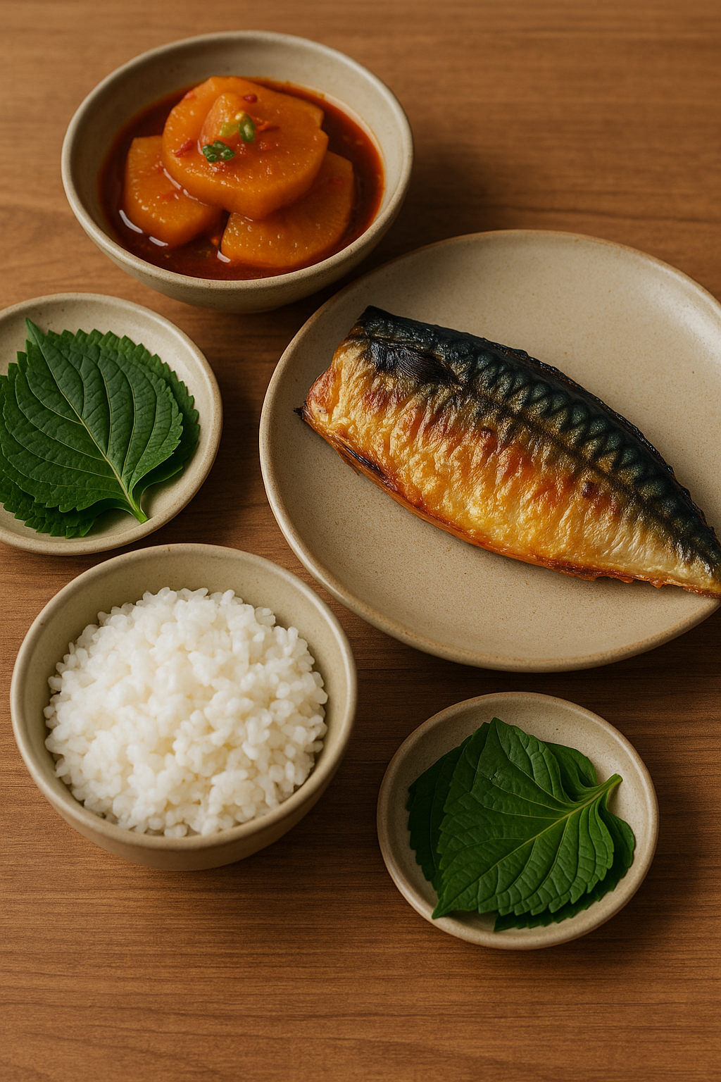 고등어구이, 무조림, 깻잎으로 차린 소박한 집밥 이야기. 특별하진 않지만 따뜻한 위로와 정성을 전해주는 하루의 든든한 밥상.