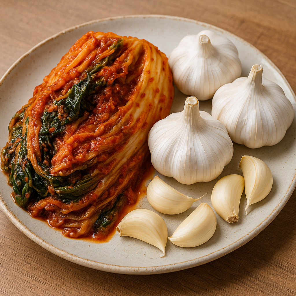 🥬🧄 배추김치와 마늘 – 장과 혈관을 동시에 챙기는 궁합